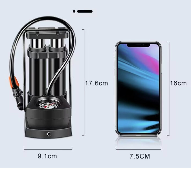 3. Dual-Pump Efficiency: Equipped with a double-barrel design and a sealed piston, this bicycle tire air pump delivers high-pressure airflow, allowing for rapid inflation. Experience faster filling with a stable and efficient pumping action that provides ample volume with each step.